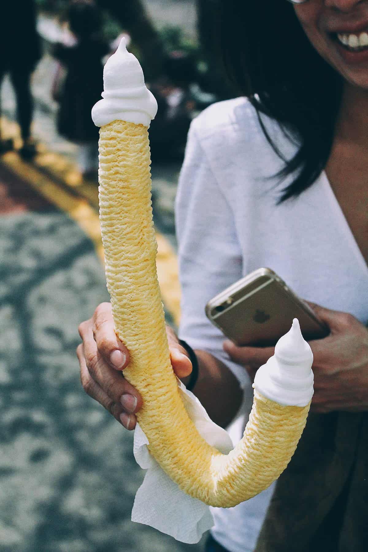 Sepertinya sekarang banyak penjual Jipangyi Ice Cream di Indonesia ya, karena memang terinspirasi dari Korea Selatan lhoh. Yang bikin unik adalah cone es krim-nya, panjang dan biasanya berbentuk spiral, tongkat, hati dan lainnya. Di Korea, Kamu bisa menemukan penjual Jipangyi Ice Cream di jalanan atau container food.